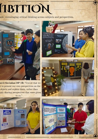 HIBITION now, encouraging critical thinking across subjects and perspectives. amvit Govindani DP 1B: “I loved that we ot to present our own perspectives on the objects and explain them, rather than mply sharing perspectives that were given to us.”